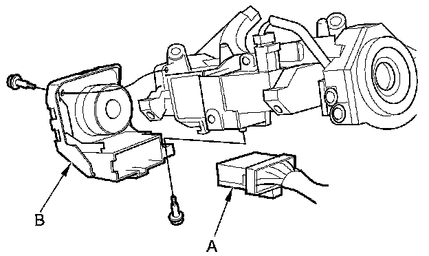 3. Disconnect the 7P connector (A) from the ignition switch (B).