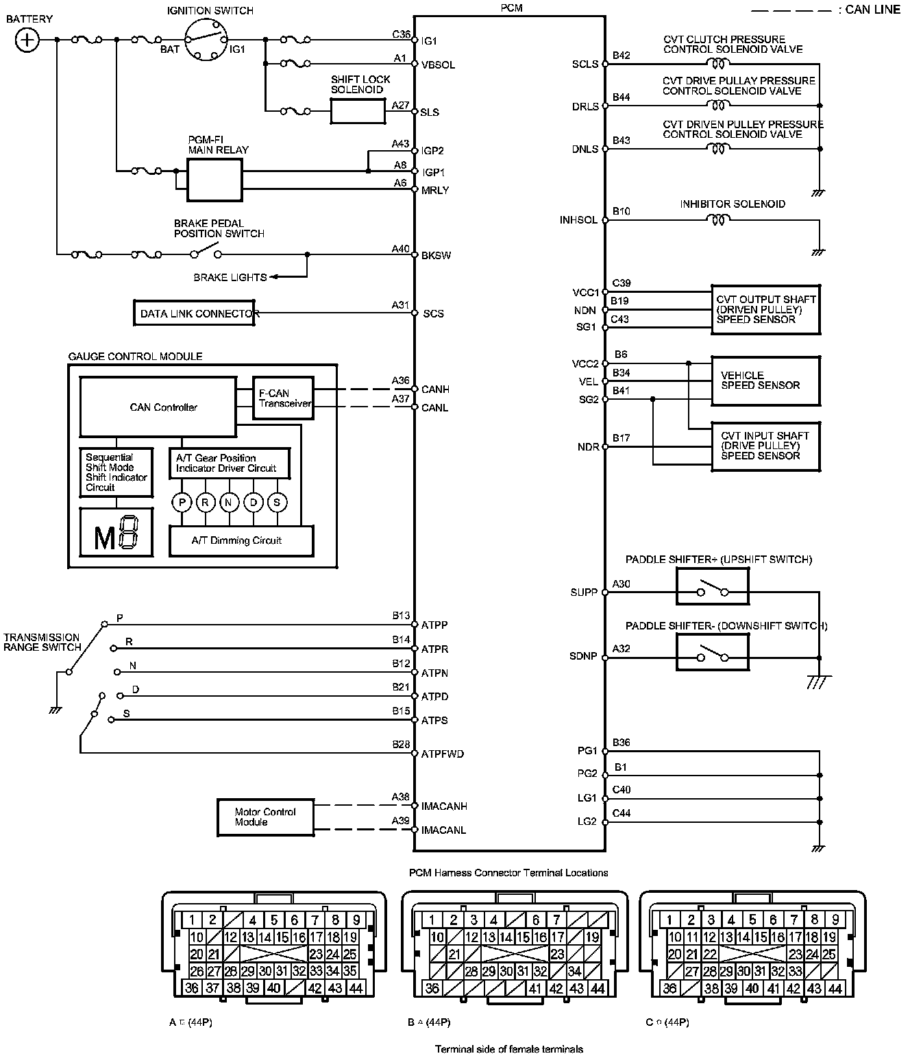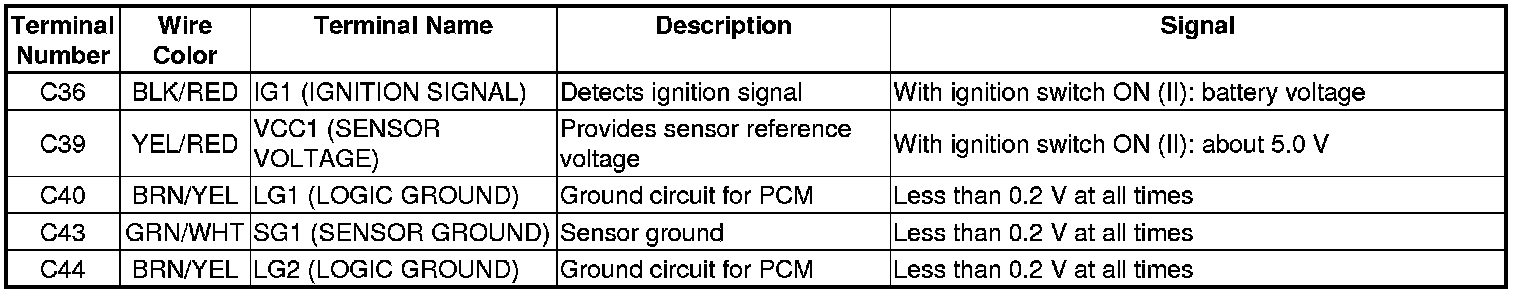 PCM Inputs and Outputs at Connector C (circle) (44P)