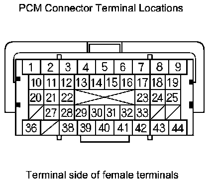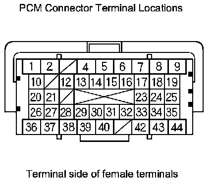 PCM Inputs and Outputs at Connector A (square) (44P)