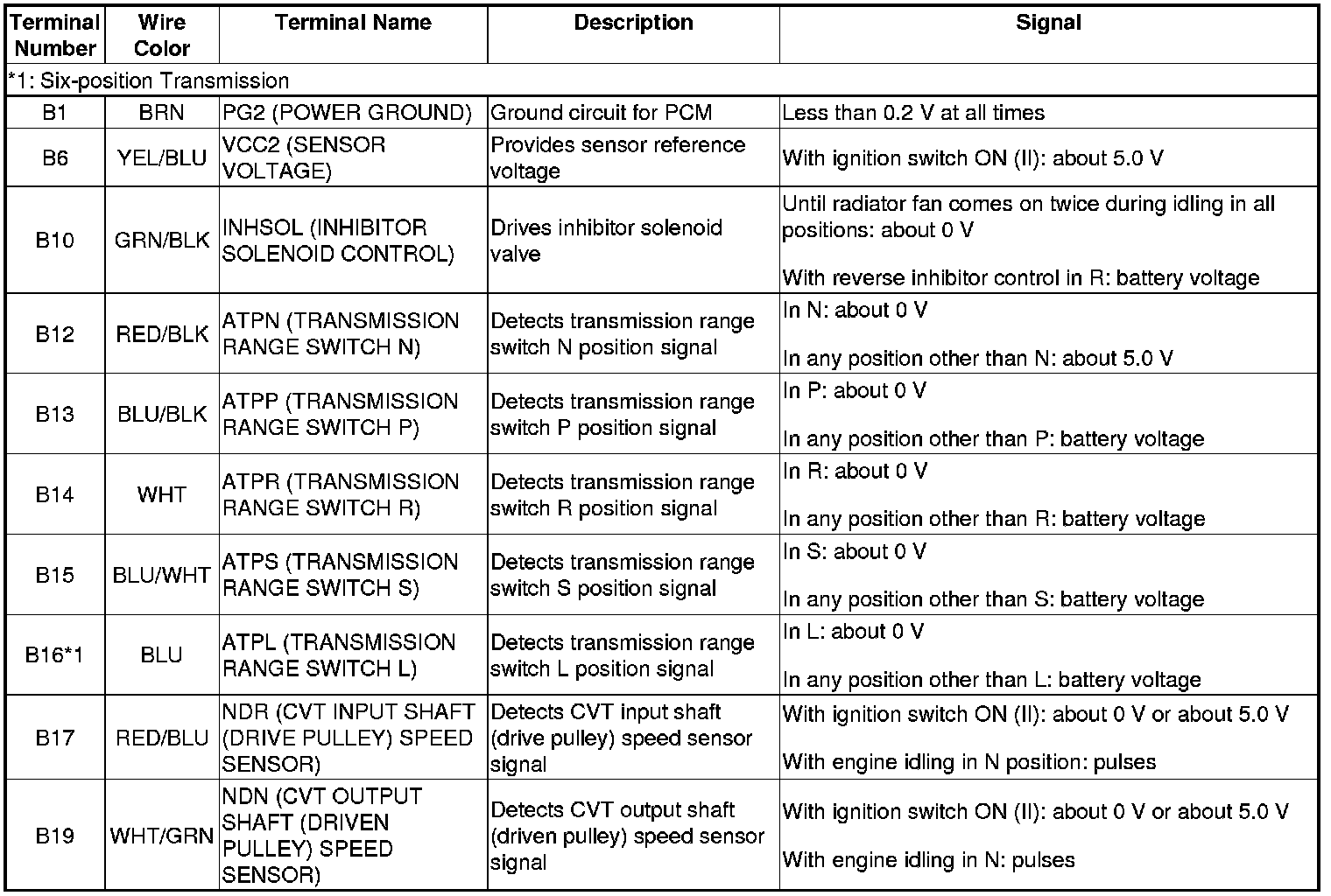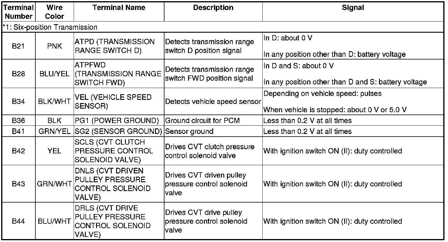 PCM CVT Control System Electrical Connections-Six-position Transmission