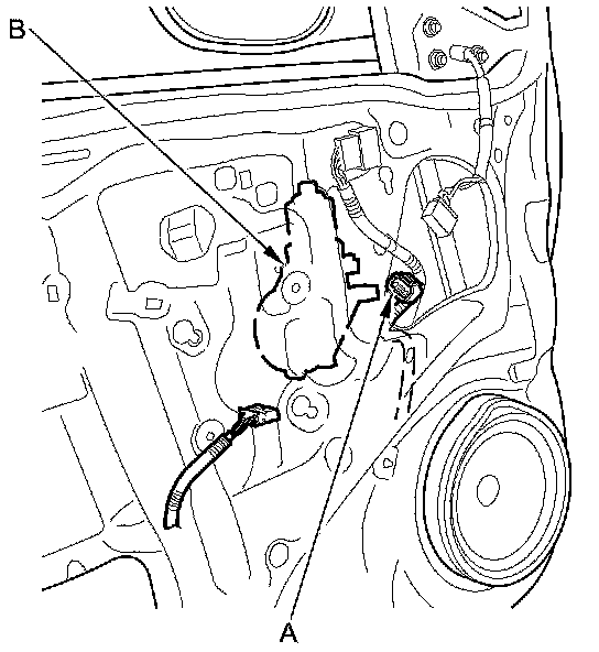 4. Disconnect the 6P connector (A) from the driver's power window motor (B).