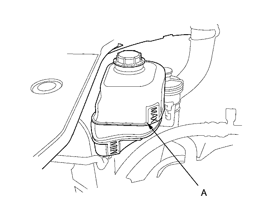 10. Fill the coolant reservoir to the MAX mark (A) with Honda Long Life Antifreeze/Coolant Type 2.