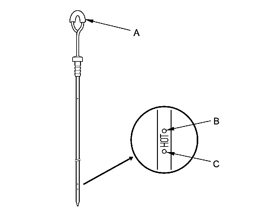 9. Make sure the ATF level is between the upper mark (B) and the lower mark (C) on the dipstick.