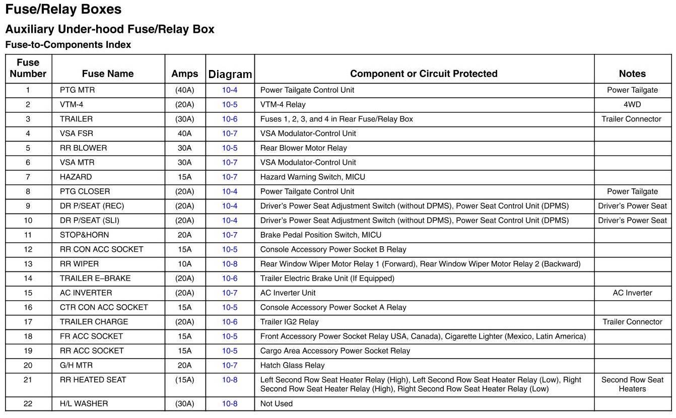 Auxiliary Under-Hood Fuse/Relay Box - Fuse-To-Components Index