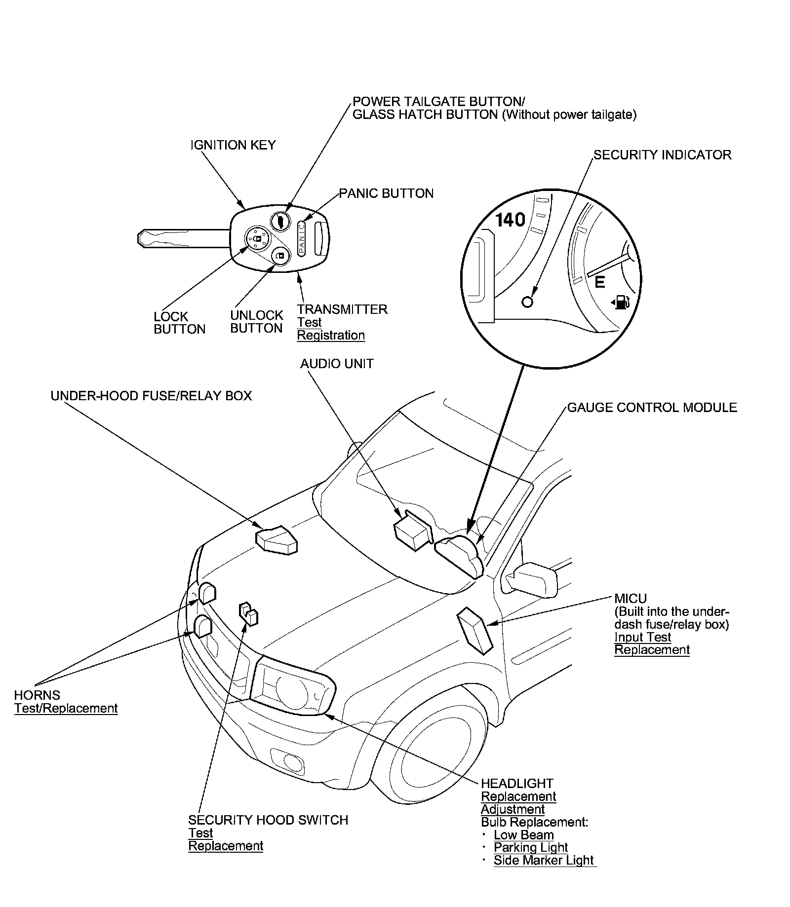 Keyless/Power Door Locks/Security System Component Location Index (With Power Tailgate)