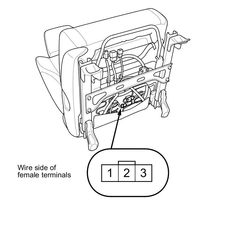 5. If the continuity is not as specified, replace the seat-back heater Service and Repair.