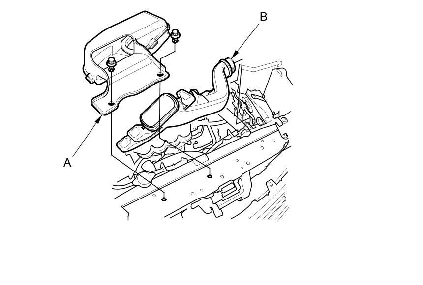 4. Remove the water separator (A) and the intake air duct (B).