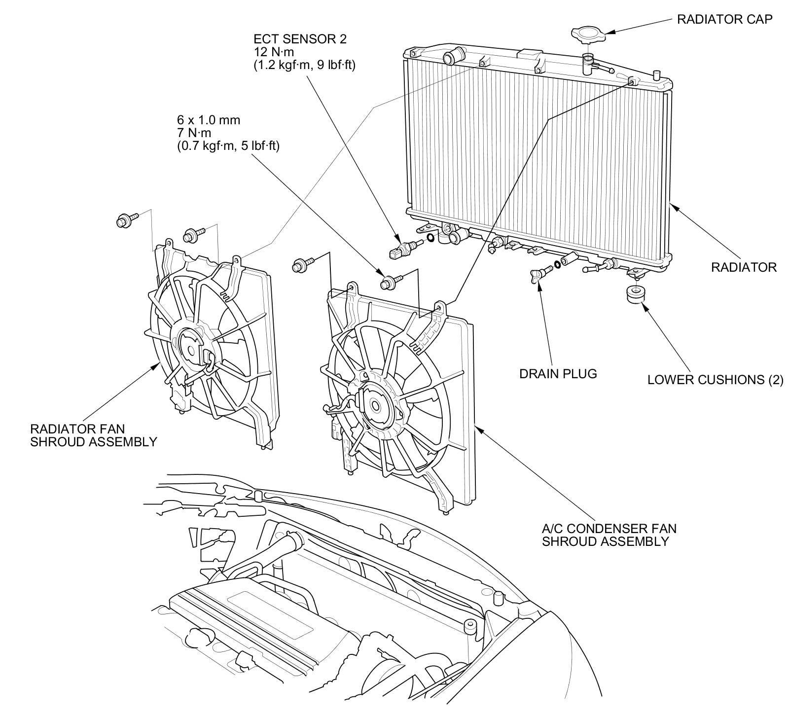 14. A/T (without ATF warmer): Refill the transmission with the ATF ATF Replacement.