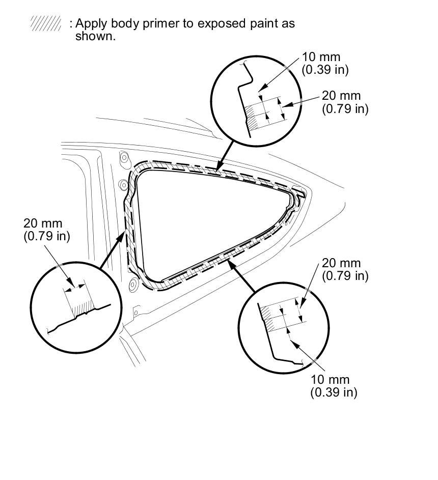 - Do not apply body primer to the quarter glass, and do not mix up the body and glass primer applicators.