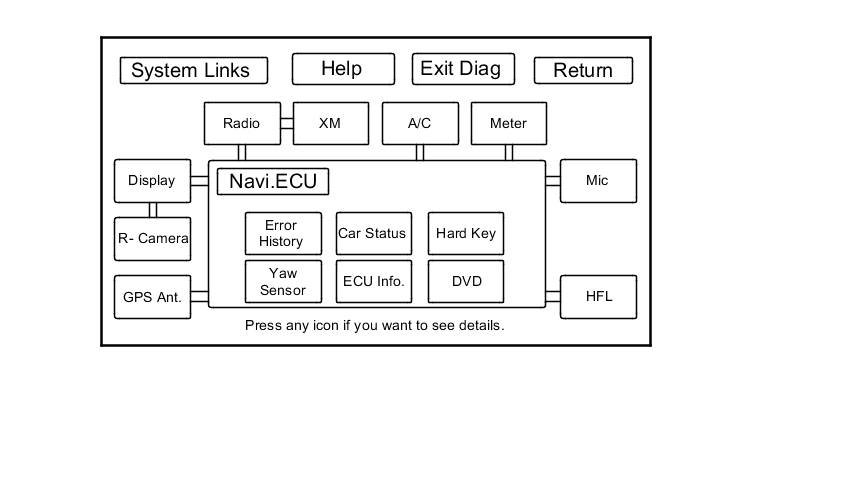 - Detail Information & Setting (allows you to manually diagnose the navigation system)