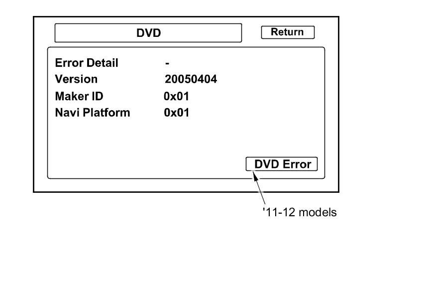 - If the Error Detail shows " - ", error is not detected with the navigation DVD. If any error is detected, make sure that the correct navigation DVD color and version are installed, and inspect the navigation DVD for dirt or damage.