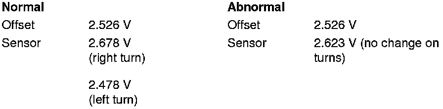- A sensor output voltage HIGHER than the Offset voltage indicates that the vehicle is turning to the right.