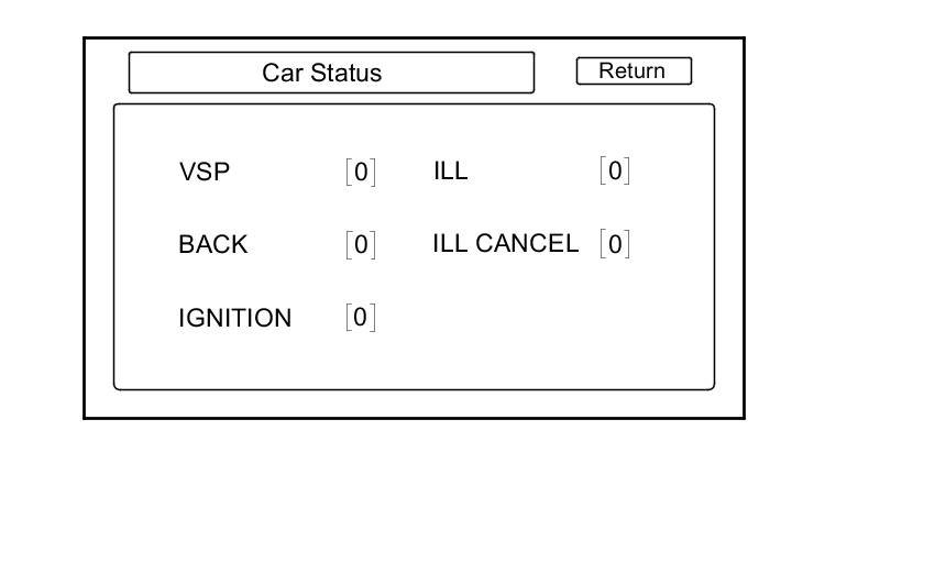 This diagnosis checks if the navigation unit is properly receiving input signals. Signals equal to (0) are OFF, and signals equal to (1) are ON. If the value on the display does not match the actual vehicle status, then check the wire carrying the signal.