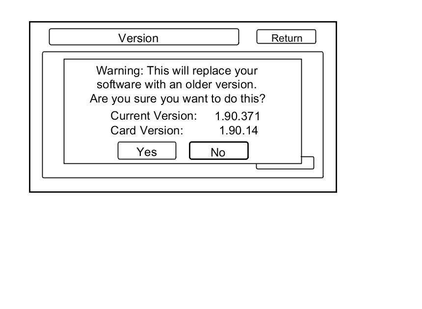 This screen shows the current version information for the navigation system software. In addition, this screen allows the loading of updated software if requested by the factory, or instructed by a Service Bulletin. Software may be loaded from a CD or a PC card.
