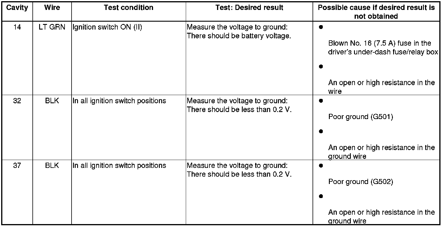 NOTE: Before testing, troubleshoot the multiplex integrated control unit first, using B-CAN System Diagnosis Test Mode A.