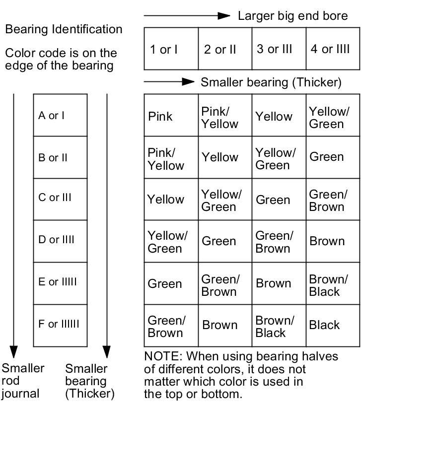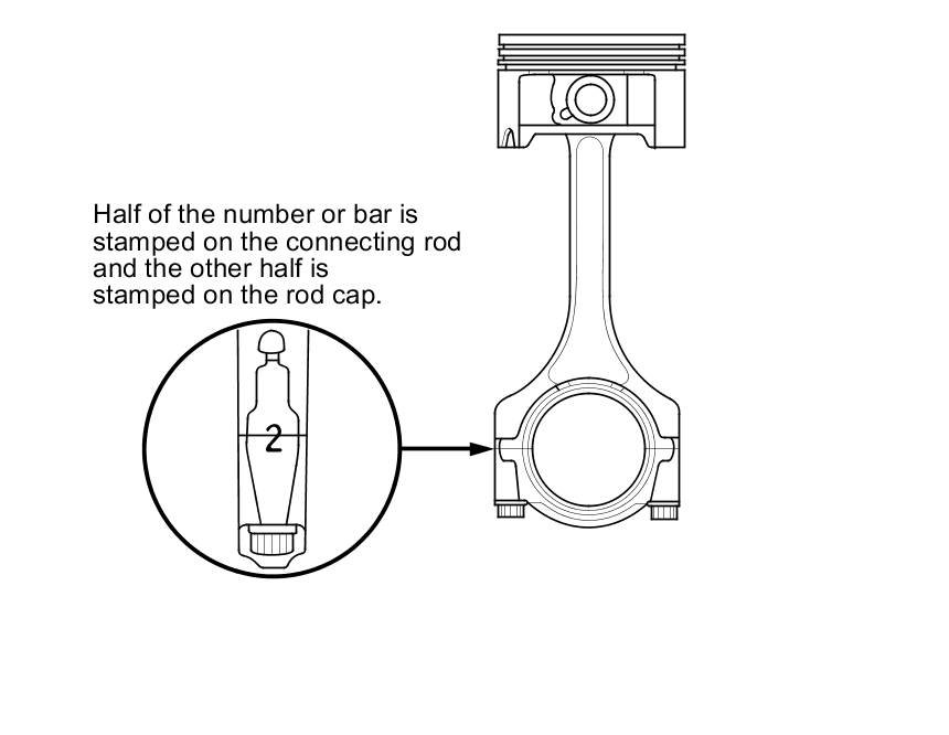 Numbers or bars have been stamped on the side of each connecting rod as a code for the size of the big end. Use them, and the letters or bars stamped on the crank (codes for rod journal size), to choose the correct bearings. If the codes are indecipherable because of an accumulation of dirt and dust, do not scrub them with a wire brush or scraper. Clean them only with solvent or detergent.