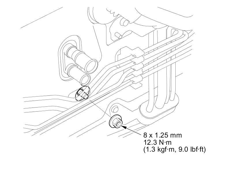 6. Remove the mounting nut from the heater unit. Take care not to damage or bend the fuel lines or the brake lines, etc..