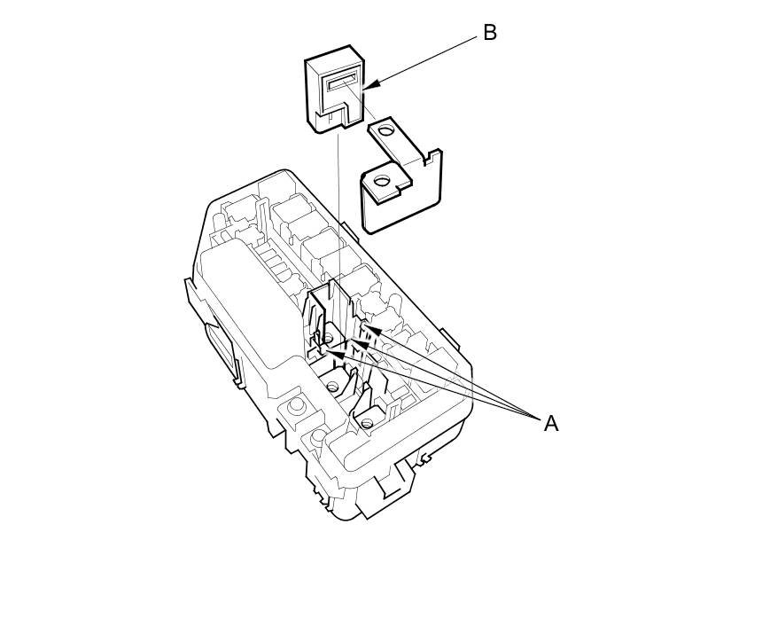 3. Remove the under-hood fuse/relay box (C) from the bracket.