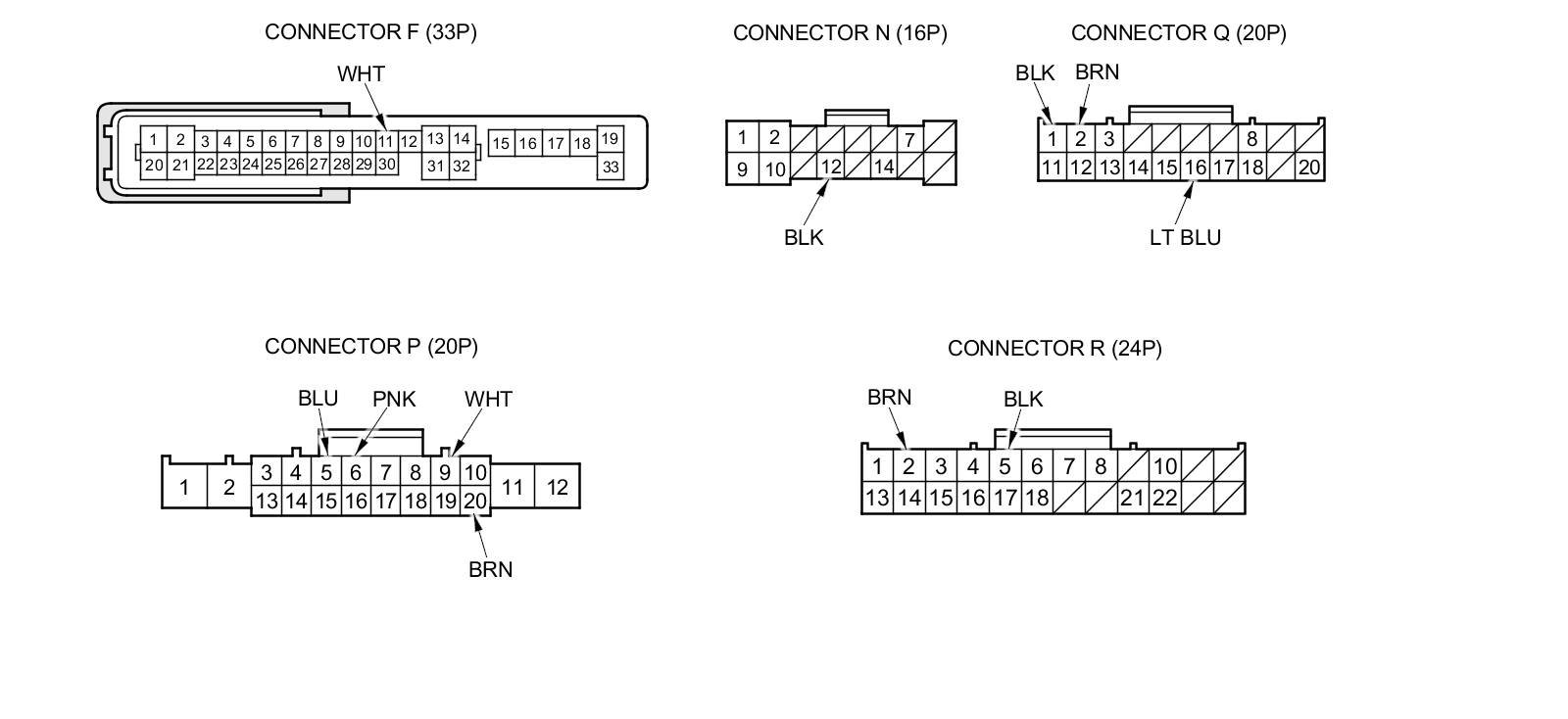 3. Disconnect driver's under-dash fuse/relay box connectors F, N, P, Q, and R.