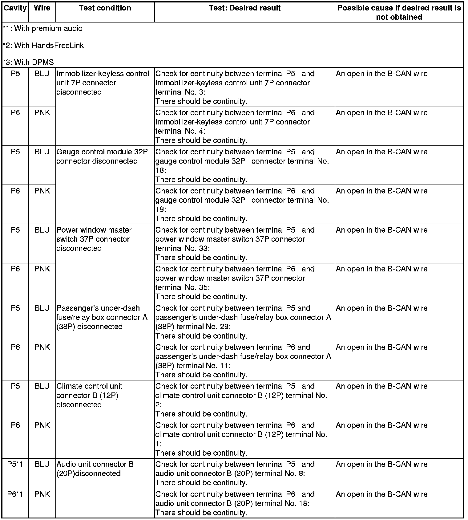 NOTE: Before testing, troubleshoot the multiplex integrated control unit first, using B-CAN System Diagnosis Test Mode A.