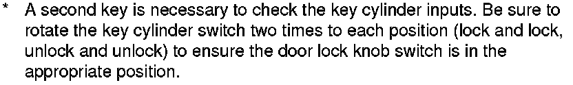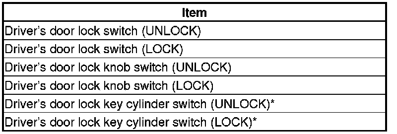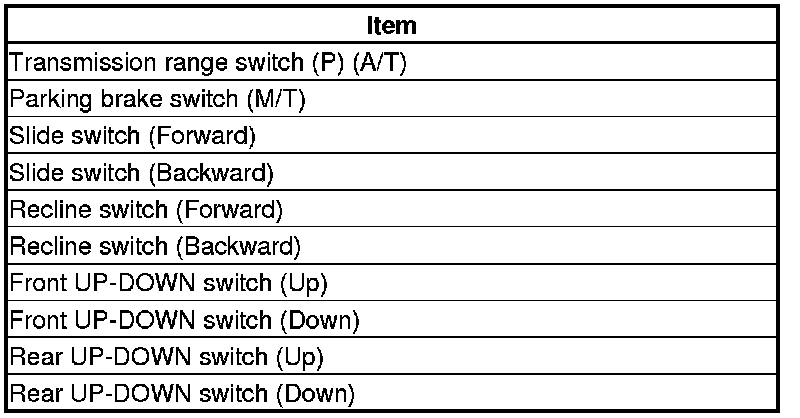 12. The following tables list the circuits that can be checked in Test Mode 2. Operate the switch that is most closely related to the problem. If the circuit is OK, the ceiling light blinks once. If the circuit is faulty, there is no indication.