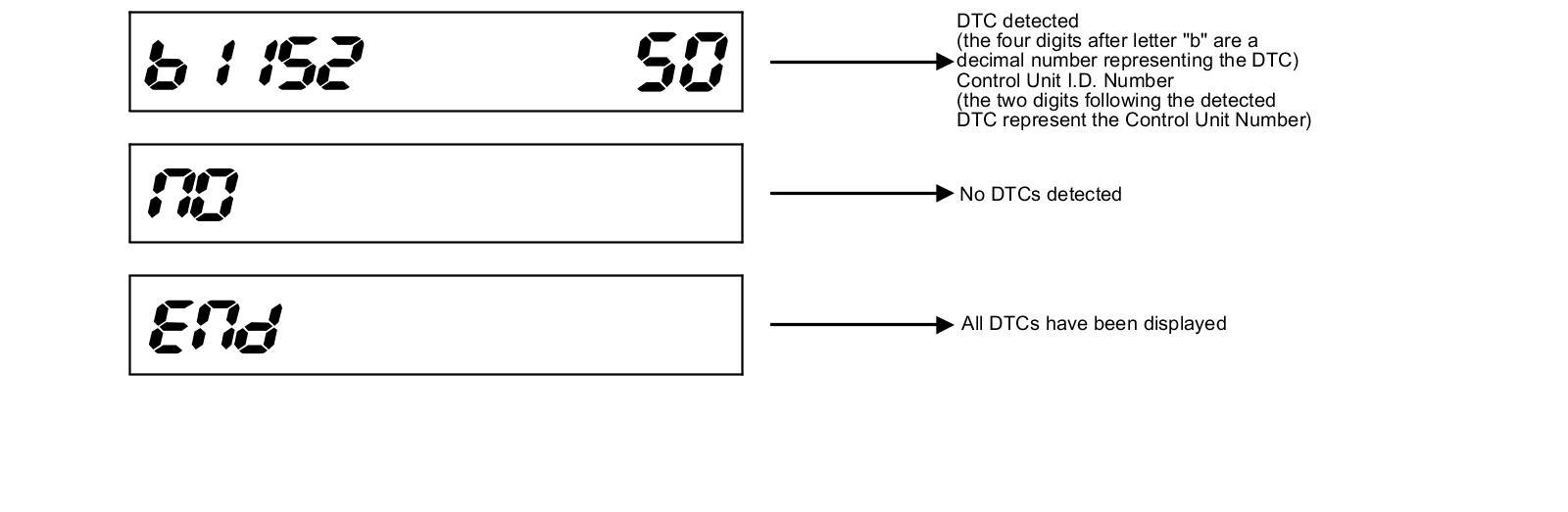 Enter B-CAN System Diagnosis Test Mode 1. While in Test Mode 1, when communication between the MICU and gauge control module is normal, the DTCs that have been detected and stored individually by various B-CAN (Body-controller Area Network) units are shown one by one on the odo/trip display. To scroll through the DTCs, press the SEL/RESET button.