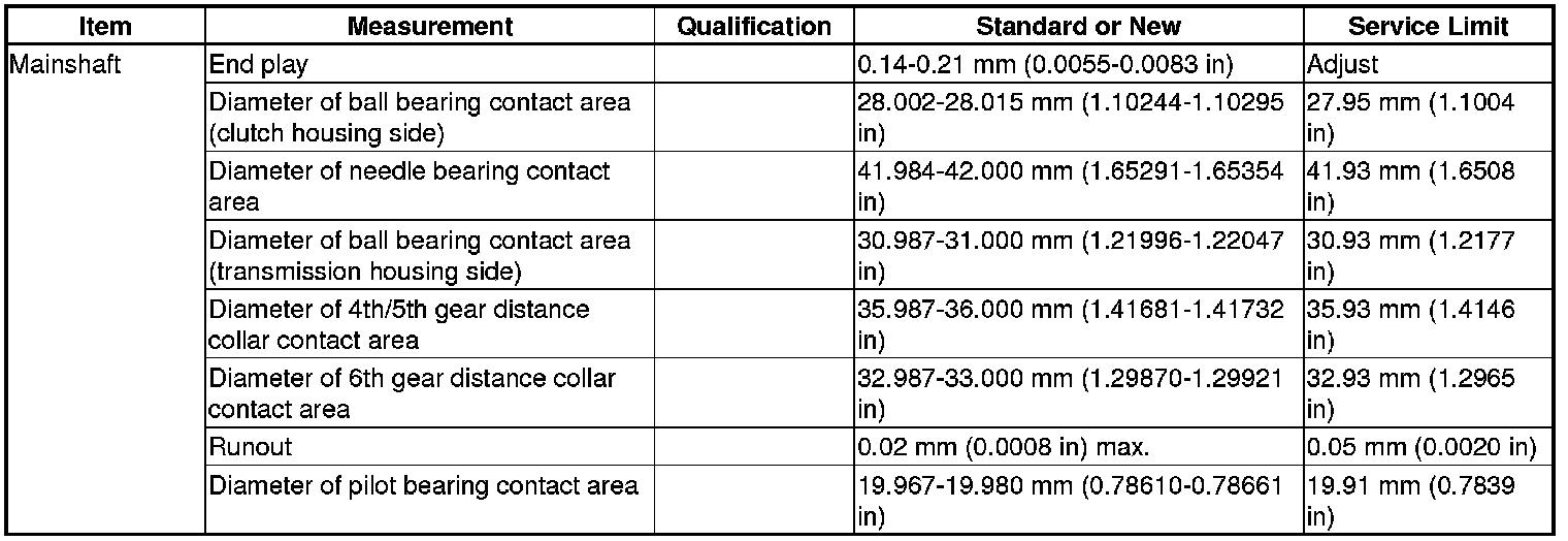 Mainshaft Specification(s) (M/T)