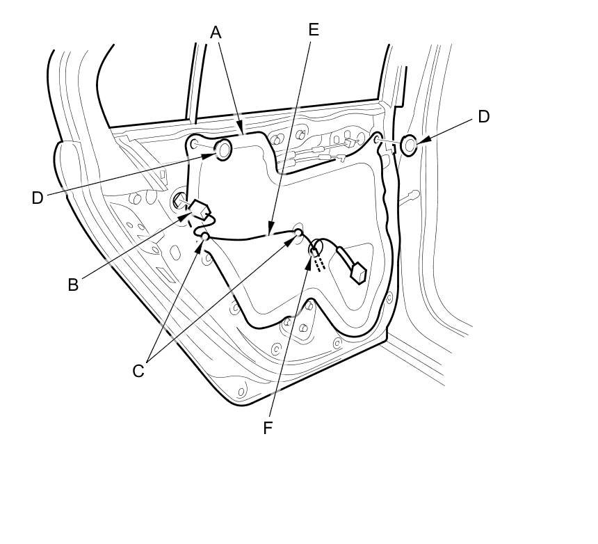 - When reinstalling the door panel, make sure the plastic cover is installed properly and sealed around its outside perimeter to seal out water.