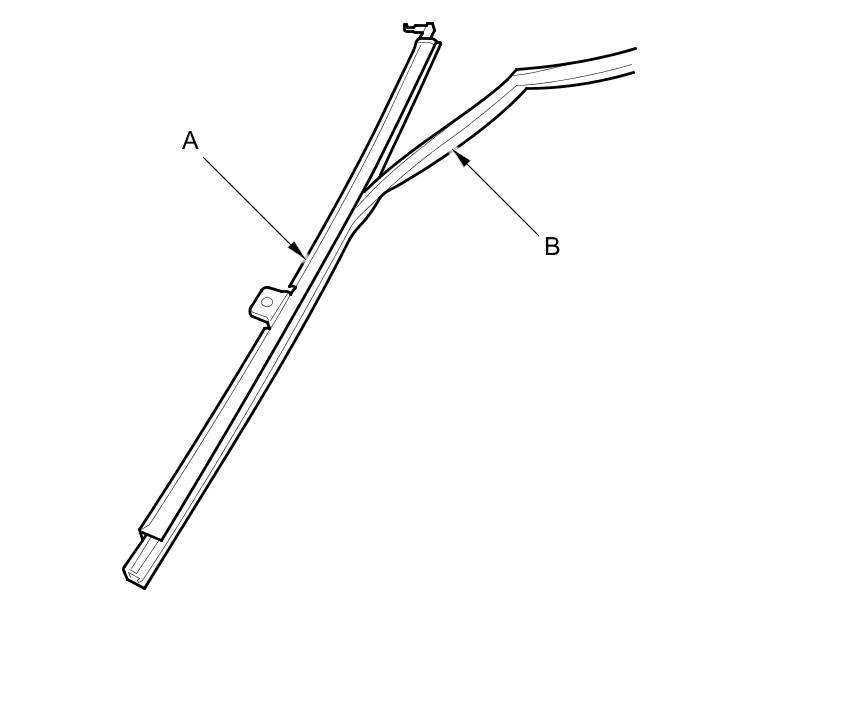 6. Remove the rear lower channel (A) from the glass run channel (B).