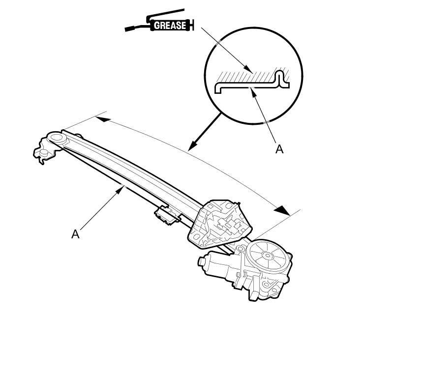 11. Apply multipurpose grease to all the sliding surfaces of the regulator (A) where shown.