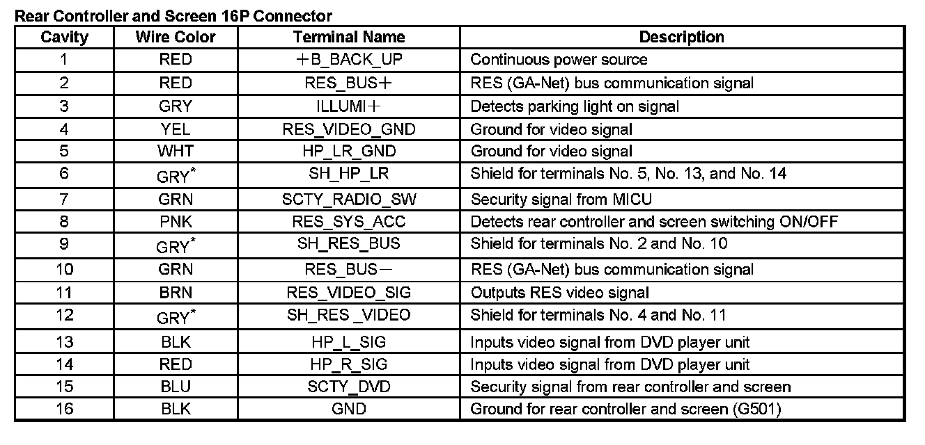 REAR CONTROLLER and SCREEN 16P CONNECTOR