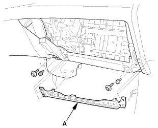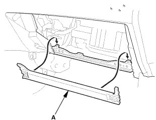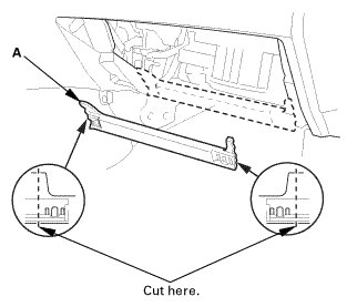 1. Cut the cross brace (A) in the glove box opening with diagonal cutters in the area shown, and remove it.