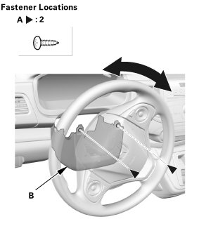 3. Turn the steering wheel to the left. Install the screw (A) securing the lower column cover (B) from the front side.