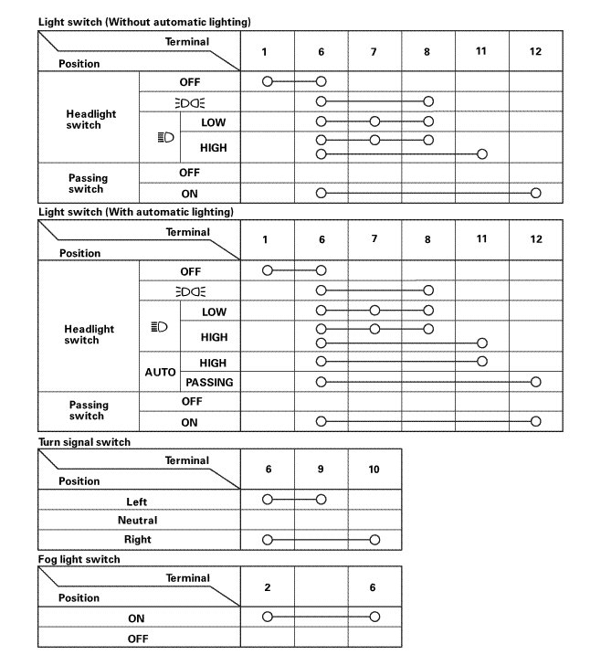 2. Check for continuity between the terminals in each switch position according to the table.
