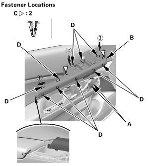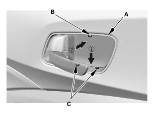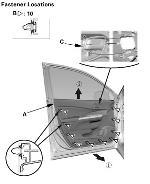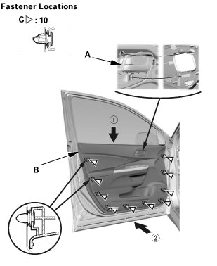 2. Install the door panel. Make sure the clips (C) snap into place securely.