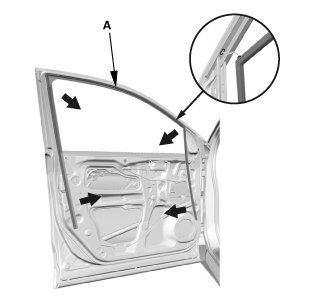 1. Install the front door glass outer weatherstrip (A).