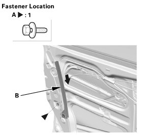 1. Remove the screw (A) securing the front door glass outer weatherstrip.