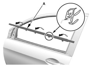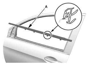 3. Remove the front door glass outer weatherstrip (A).
