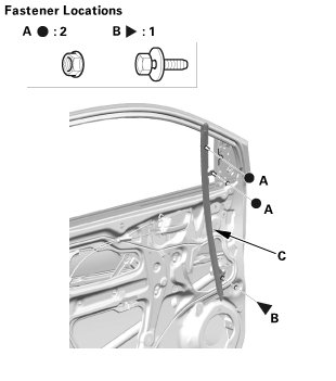 6. Remove the inner handle (C) from the door panel, then remove the door panel.