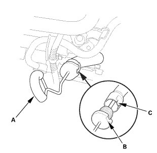 1. Remove the bolts (A), then remove the clips (B) that secure the front inner fender and the front splash shield (C) to the body.