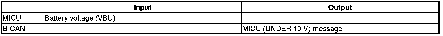 When any of the data from the B-CAN circuit cannot be received within a specified time, or an unusual combination of data is recognized, the MICU moves to the software fail-safe mode. The data that was not received is forced to a pre-programmed value.