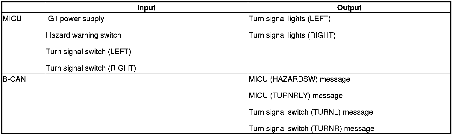 The MICU controls the turn signal/hazard warning lights based on inputs from the turn signal switch and the hazard warning switch.