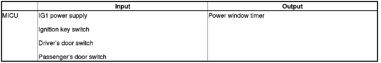 The MICU controls the power window key-off operation based on inputs from each switch.