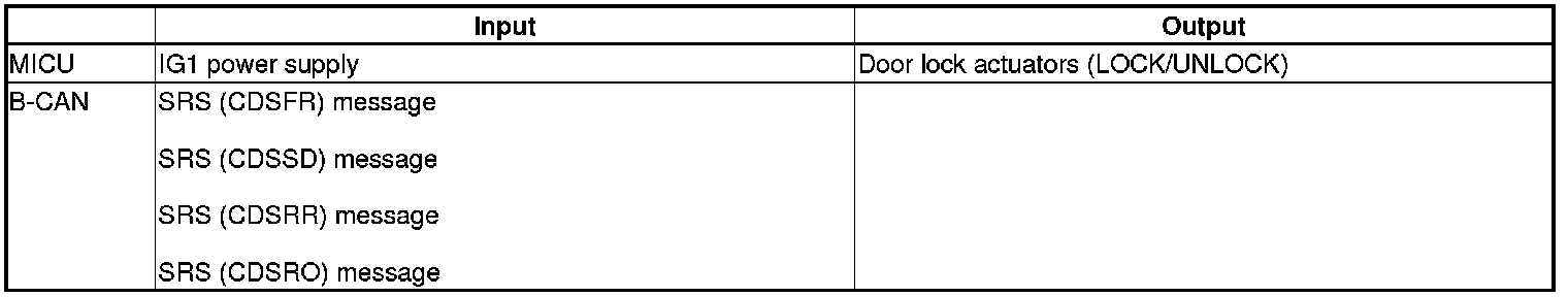The MICU controls the door lock actuators based on IG1 and SRS (CDS) inputs.