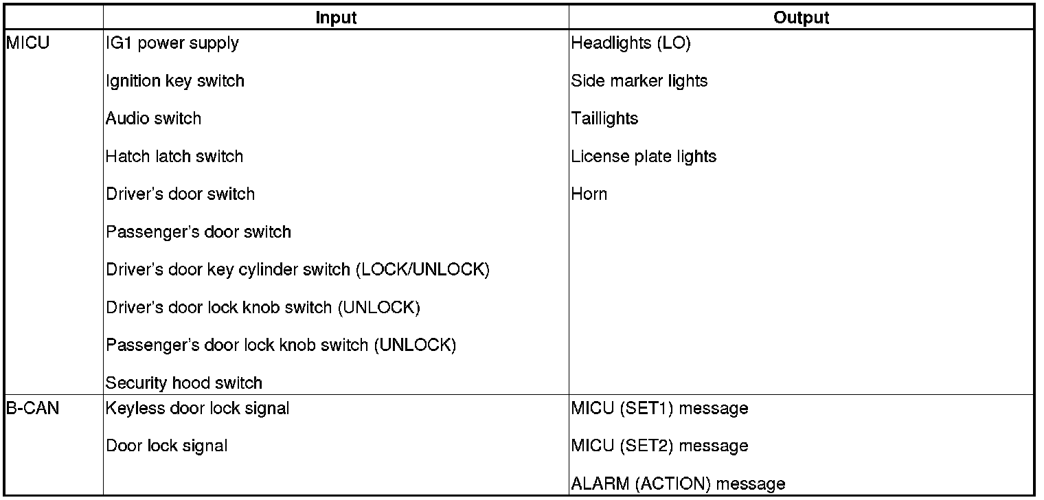 The MICU controls the keyless PANIC function based on PANIC signals sent by B-CAN.