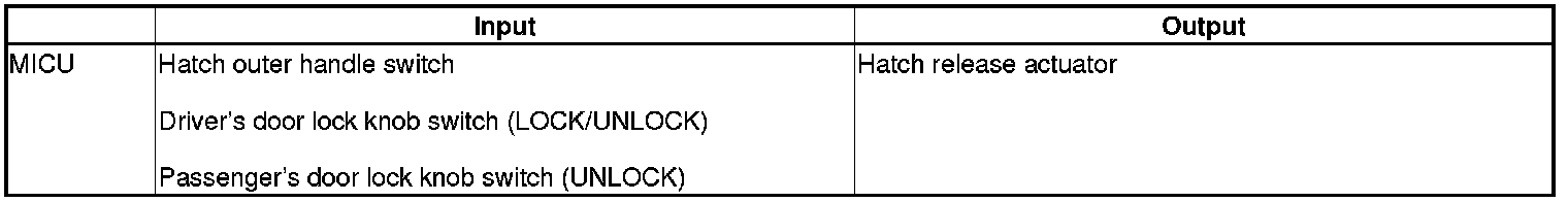 The MICU controls the rear window wiper motor and the rear window washer motor based on inputs from each switch.