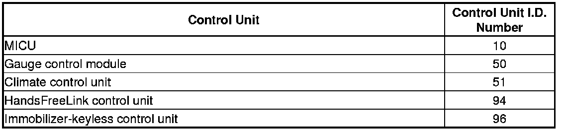 When an ECU on the CAN circuit is unable to communicate with other ECUs on the CAN circuit, the other control units set loss of communication DTCs. Use this chart to find the control unit that is not communicating with the other control units on the CAN circuit.