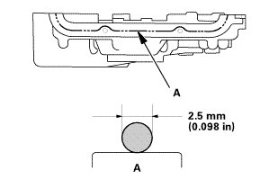 * Apply a 2.5 mm (0.098 in) diameter bead of liquid gasket along the broken line (A).