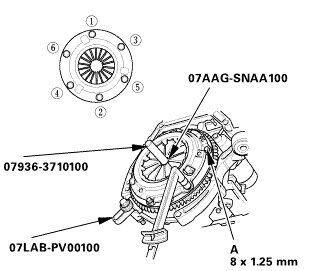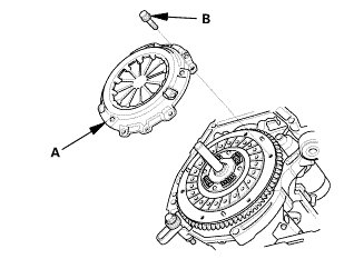 2. Torque the pressure plate mounting bolts (A) in a crisscross pattern.