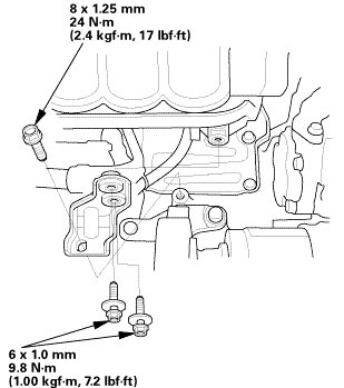 2. Remove all of the old liquid gasket from the oil pump mating surfaces, the bolts, and the bolt holes.